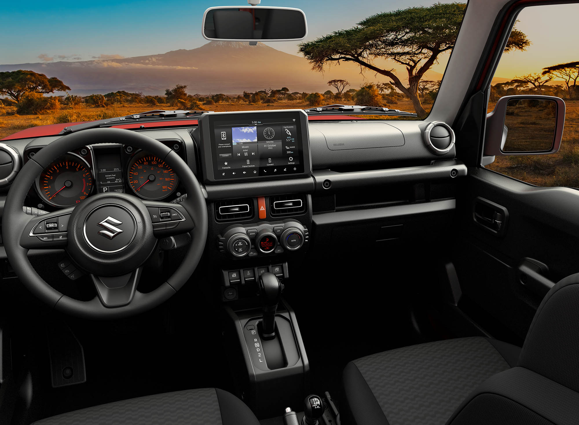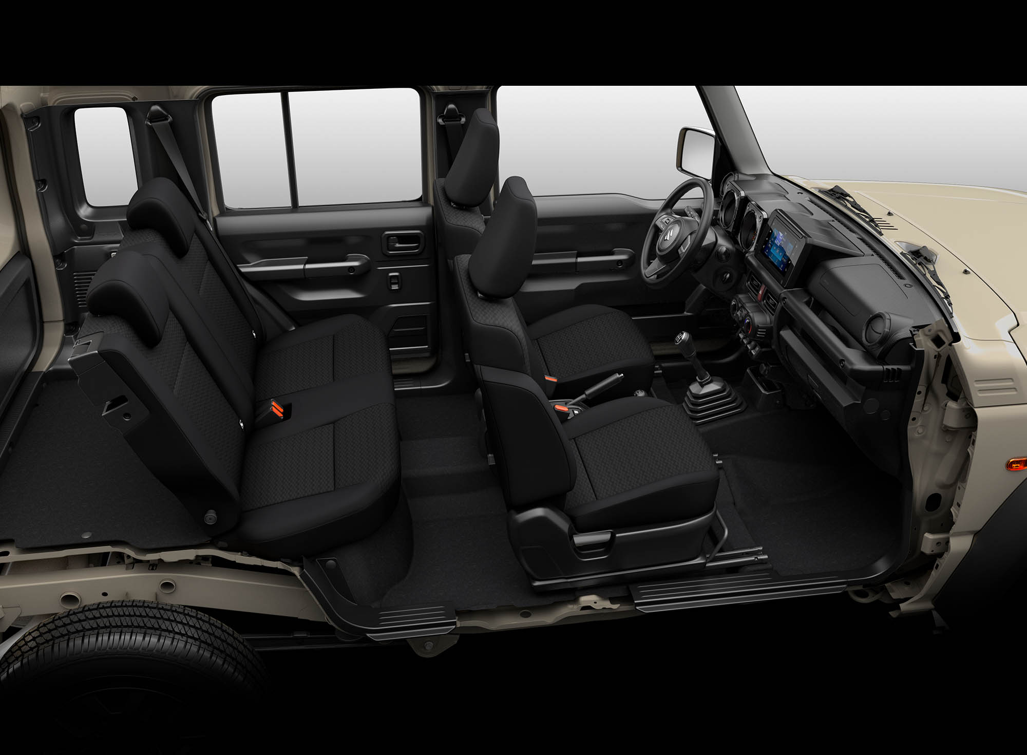 Nada menos que ejes rígidos de ancho completo tanto delante como detrás, que ayudan al Jimny a garantizar un agarre superior en diversas superficies.